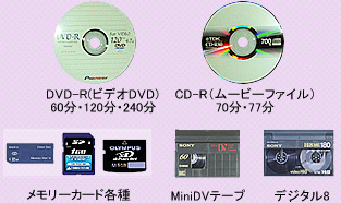 ヤハタヤカメラでは、8ミリフィルム・8ミリビデオ・VHSテープ・ベータ・DVC・CD・カセットテープなどの原版をダビング複製いたします