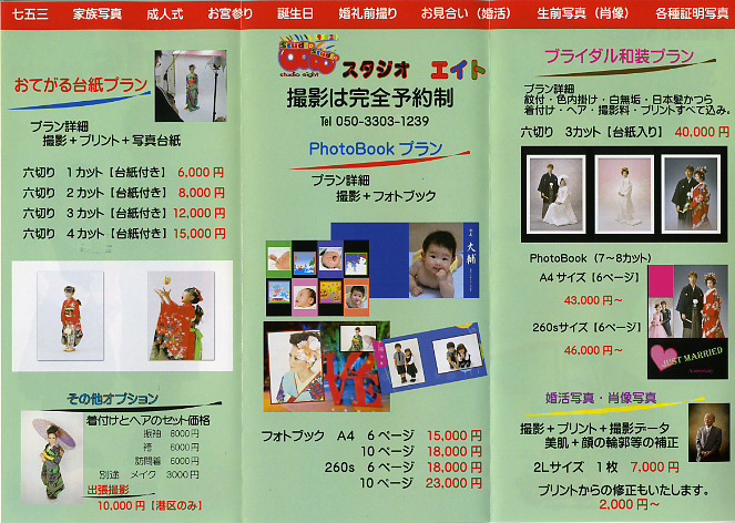当スタジオでは衣装が無い代わりに、プリント料込みで4,000円よりフォトブック仕上げで15,000円からご提供します。